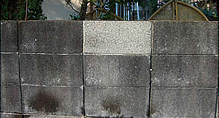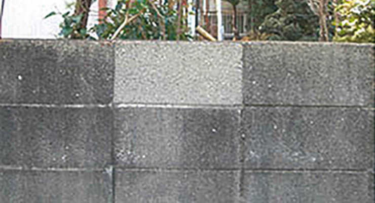 ブロック塀を洗浄後、ナノゾーンコートを施工