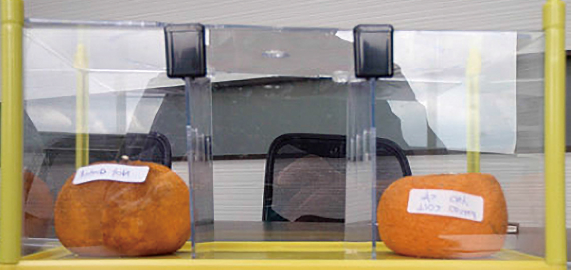 みかんにナノゾーンコートを施工し、エチレンガスの分解の経過観察しました。